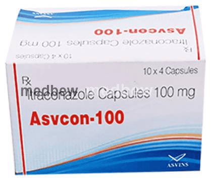 Asvcon 200 Capsule belongs to a group of medicines called antifungals. It works by stopping the growth of fungi and is used to treat infections of the mouth, throat, vagina, and other parts of the body including fingernails and toenails. It kills fungi by destroying the fungal cell membrane.