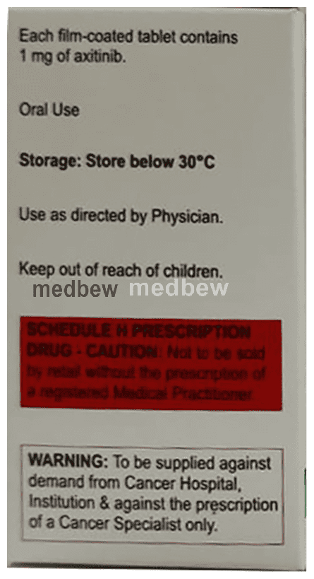 Axishil 1mg Tablet is used to treat kidney cancer and its associated symptoms such as blood in the urine, unexplained low back pain or weight loss, fatigue, loss of appetite, etc. It stops cancer growth and prevents multiplication of cancer cells. This restricts the advancement of cancer to other unaffected regions. You need to follow your doctor’s instructions very carefully to recover.