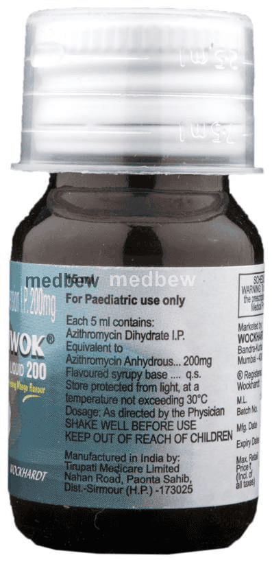 Aziwok 200 Liquid Mango is an antibiotic medication. It is commonly given to children for the treatment of a wide range of bacterial infections targeting the ear, eyes, nose, throat, lungs, skin, and gastrointestinal tract.