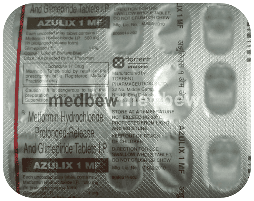 Azulix 1 MF Tablet PR belongs to a category of medicines known as anti-diabetic drugs. It is a combination of two medicines used to treat type 2 diabetes mellitus in adults. It helps control blood sugar levels in people with diabetes.