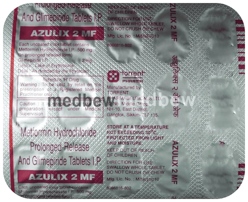 Azulix 2 MF Tablet PR belongs to a category of medicines known as anti-diabetic drugs. It is a combination of two medicines used to treat type 2 diabetes mellitus in adults. It helps control blood sugar levels in people with diabetes.