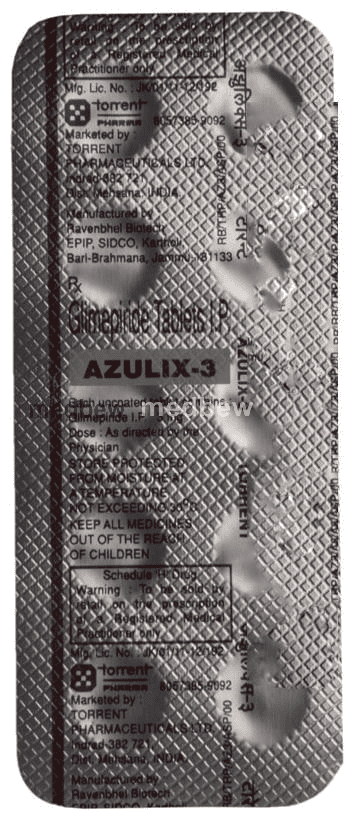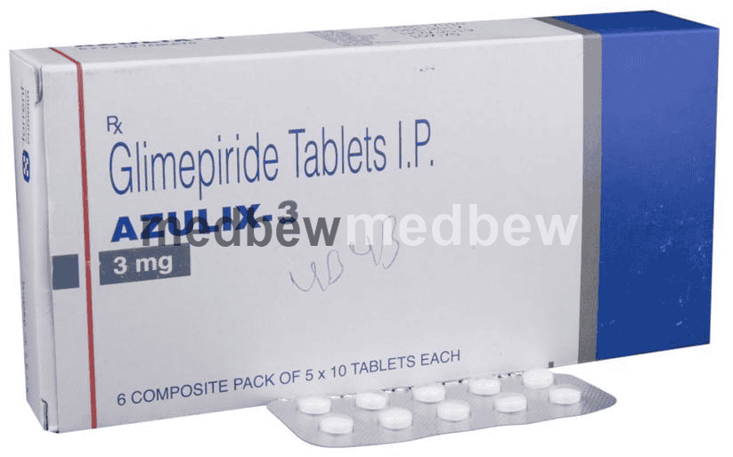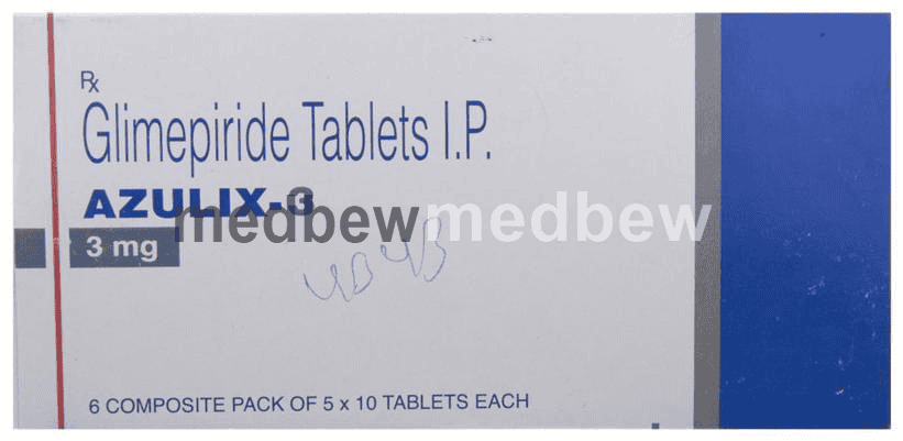 Azulix 3 Tablet belongs to a group of medicines called sulfonylureas and is used to treat type 2 diabetes mellitus in adults. It helps control blood sugar levels in people with diabetes thereby preventing serious complications of diabetes such as kidney damage and blindness.