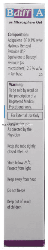Bdiff A Gel is a prescription medicine having combination of medicines that are used to treat acne. It removes the dead layer of the skin which is present on the top. It stops the growth of bacteria.