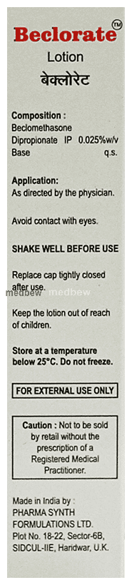 Beclorate Lotion is safe if used in the dose and duration advised by your doctor. Take it exactly as directed and do not skip any dose. Follow your doctor’s instructions carefully and let your doctor know if any of the side effects bother you.