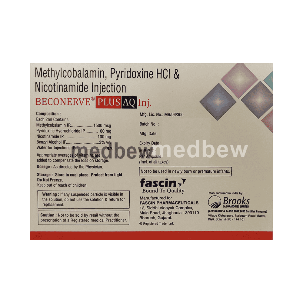 Beconerve Plus AQ Injection is a prescription medicine. It has a combination of vitamins that is prescribed to treat vitamin and other nutritional deficiencies. It ensures the proper growth and functioning of the body.