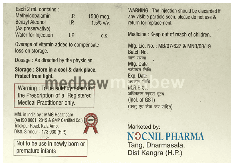 Begonia 1500mcg Injection is a man-made form of vitamin B12. It is used to treat deficiency of vitamin B12 in the body. Vitamin B12 is important for growth, cell reproduction, blood formation, and protein and tissue synthesis. It also helps to treat anemia, fatigue, and numbness or tingling in the hands and feet.