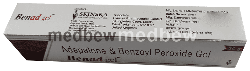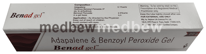 Benad Gel is a prescription medicine having combination of medicines that are used to treat acne. It removes the dead layer of the skin which is present on the top. It stops the growth of bacteria.