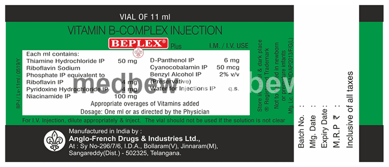 Beplex Plus Injection is a combination of nutritional supplements that is prescribed to treat nutritional deficiencies as well as vitamin B12 deficiency. It ensures the proper growth and functioning of the body.