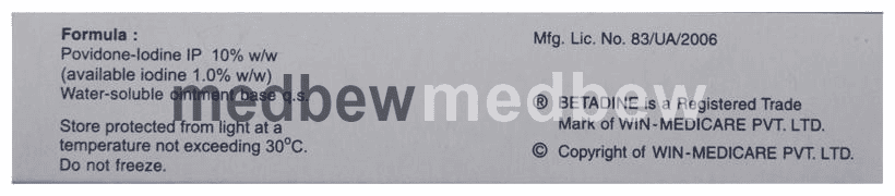 Betadine 10% Ointment is an antiseptic applied on skin, which is infected or is likely to get infected. It works by slowly releasing iodine which kills or prevents the growth of infectious microorganisms.