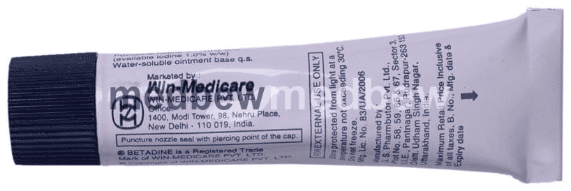 Betadine 10% Ointment is an antiseptic and disinfectant agent. It is used for prevention of infections in wounds and cuts. It kills the harmful microbes and controls their growth, thereby preventing infections on the affected area.