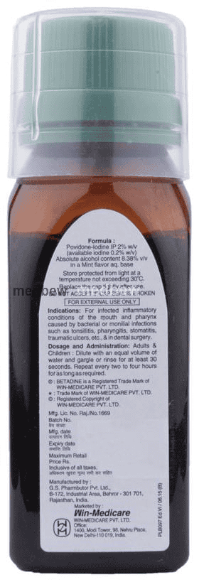 Betadine 2% Gargle Mint is an antiseptic medicine. When used as a mouthwash, it kills harmful microorganisms of your mouth. This is how it works to prevent and treat infections.