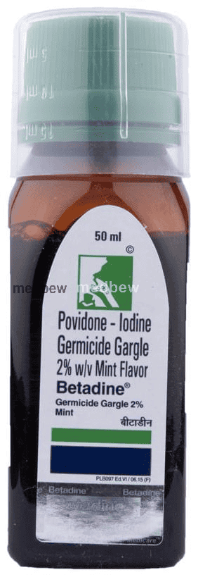 Betadine 2% Gargle Mint is a versatile antiseptic that is used for the treatment and prevention of infection. Betadine 2% Gargle Mint kills and prevents the growth of infection-causing microbes, thereby preventing abrasions, cuts, and wounds, or any break in the skin from getting infected. The antiseptic effect is caused due to the slow release of iodine. Keep the affected area clean and use the medicine as prescribed by your doctor.show moreshow less