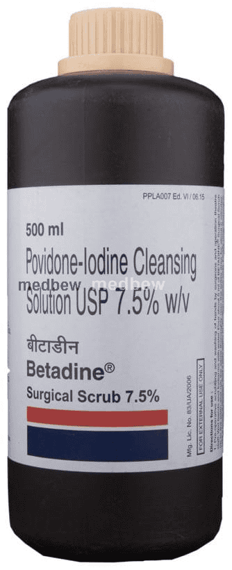 Betadine Surgical Scrub 7.5% Solution is an antiseptic applied on skin, which is infected or is likely to get infected. It works by slowly releasing iodine which kills or prevents the growth of infectious microorganisms.