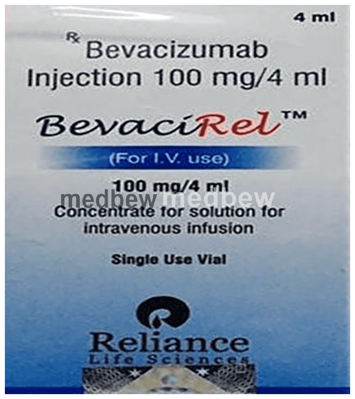Bevacirel 100mg Injection is an anticancer medication. It is used in the treatment of cancer of colon and rectum, non-small cell lung cancer, kidney cancer, brain tumor, ovarian and cervical cancer. It helps to prevent the growth of new blood vessels that feed tumors and stops tumors from growing.