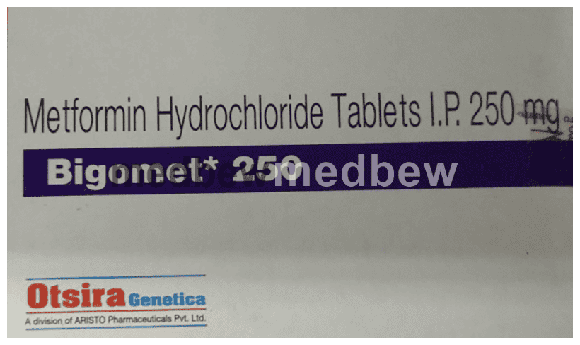 Bigomet 250 Tablet is a medicine used to treat type 2 diabetes mellitus. It helps control blood sugar levels and thus prevent serious complications of diabetes. It is also used to treat a menstruation-related disorder known as Polycystic ovary syndrome (PCOS) in women.