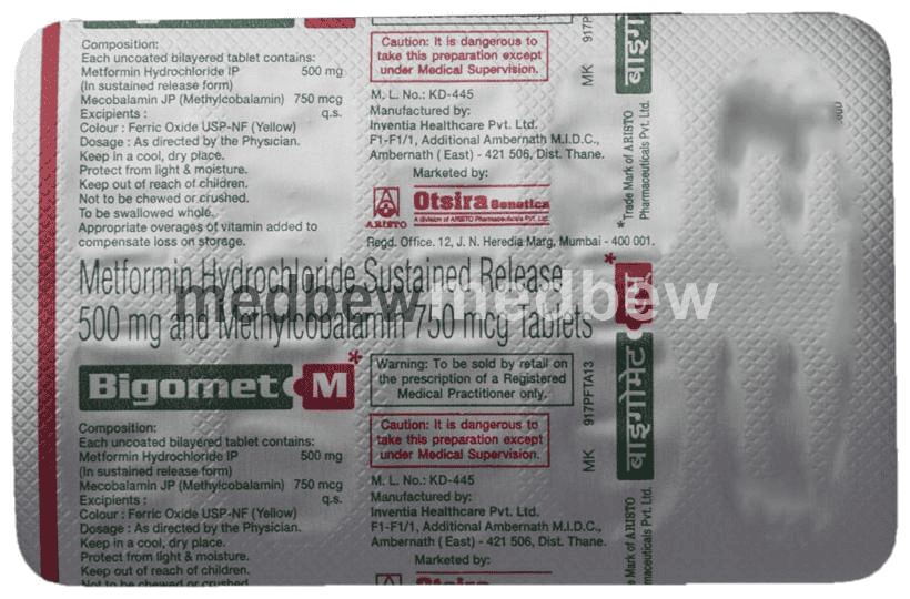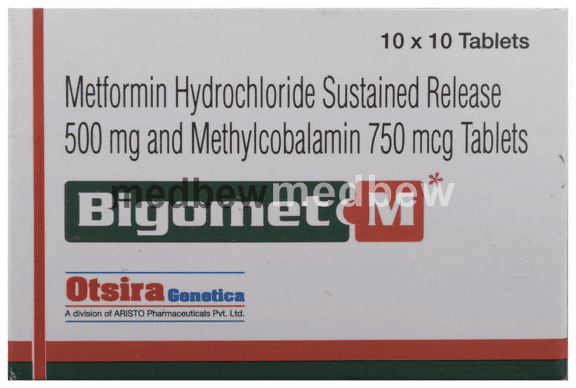 Bigomet M Tablet SR is a combination of two medicines used to treat type 2 diabetes mellitus in adults. It helps control blood sugar levels in people with diabetes. It helps to maintain blood sugar levels and reduces the chances of developing serious complications of diabetes.