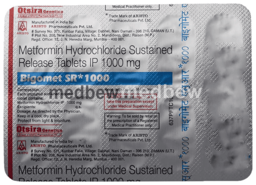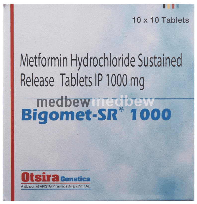 Bigomet -SR 1000 Tablet is a medicine used to treat type 2 diabetes mellitus. It helps control blood sugar levels and thus prevent serious complications of diabetes. It is also used to treat a menstruation-related disorder known as Polycystic ovary syndrome (PCOS) in women.