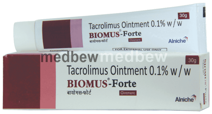 As compared to other immune-suppressing medicines, Biomus-Forte Ointment has been found to be a safe and effective short-term treatment for atopic dermatitis. When applied on the affected part of the skin, its absorption to the blood and body is minimal. Hence, the side effects are less as compared to when taken through oral route.