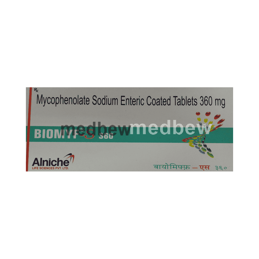 Biomyf-S 360 Tablet belongs to a group of medicines known as immunosuppressive agents. It lowers your immune response and reduces the chance of your body attacking the transplanted organ. Organ rejection happens when your immune system treats the new organ as an invader and attacks it. This medicine may be used in combination with other medicines to suppress the immune system and help your body accept the new organ.