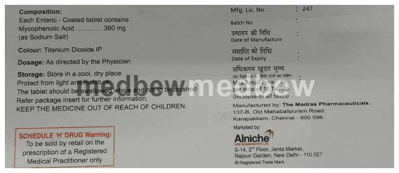 Composition Mycophenolate sodium (360mg)