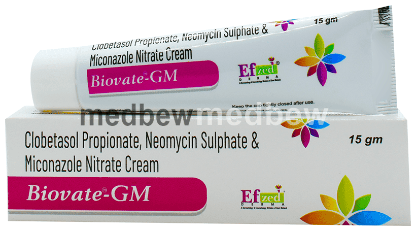 Biovate-GM Cream is a combination medicine used in the treatment of various types of skin infections. It minimizes symptoms of inflammation such as redness, swelling, and itching by acting against the infection-causing microorganisms.