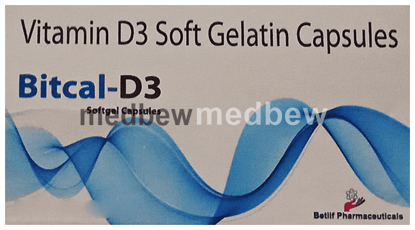 Bitcal-D3 Softgel Capsule is used in the treatment of vitamin D deficiency and osteoporosis. It helps the body to absorb calcium. Calcium is essential for maintaining strong and healthy bones. it is used when your diet does not provide enough.