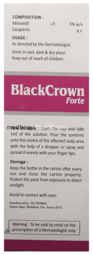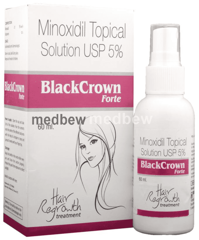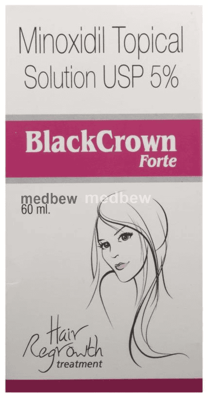 Black Crown Forte 5% Solution belongs to a class of drugs known as vasodilators. It is used to promote hair growth in men with male pattern baldness.