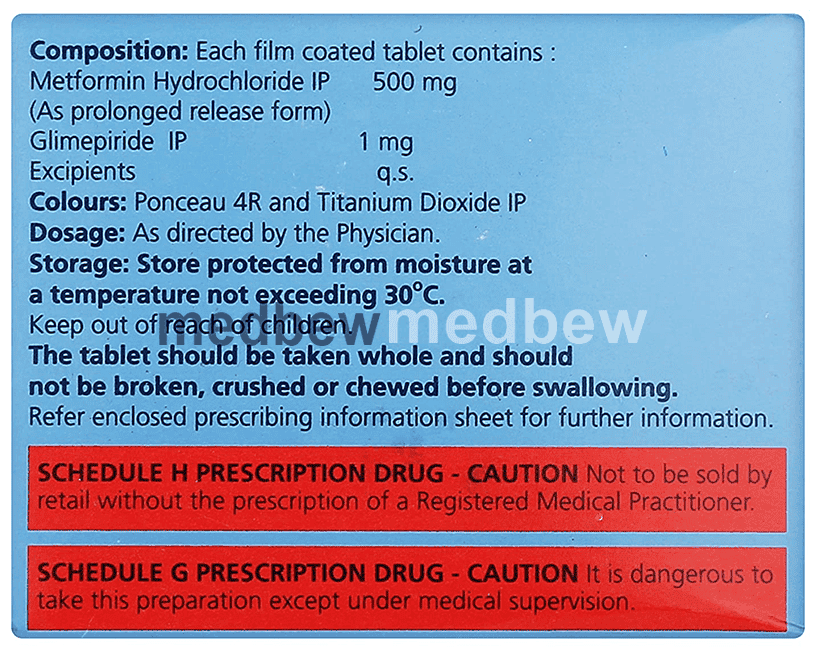 Metformin Hydrochloride Prolonged Release & Glimepiride Tablets I.P. Ankleshwar: Sanofi India Limited; 2018. view