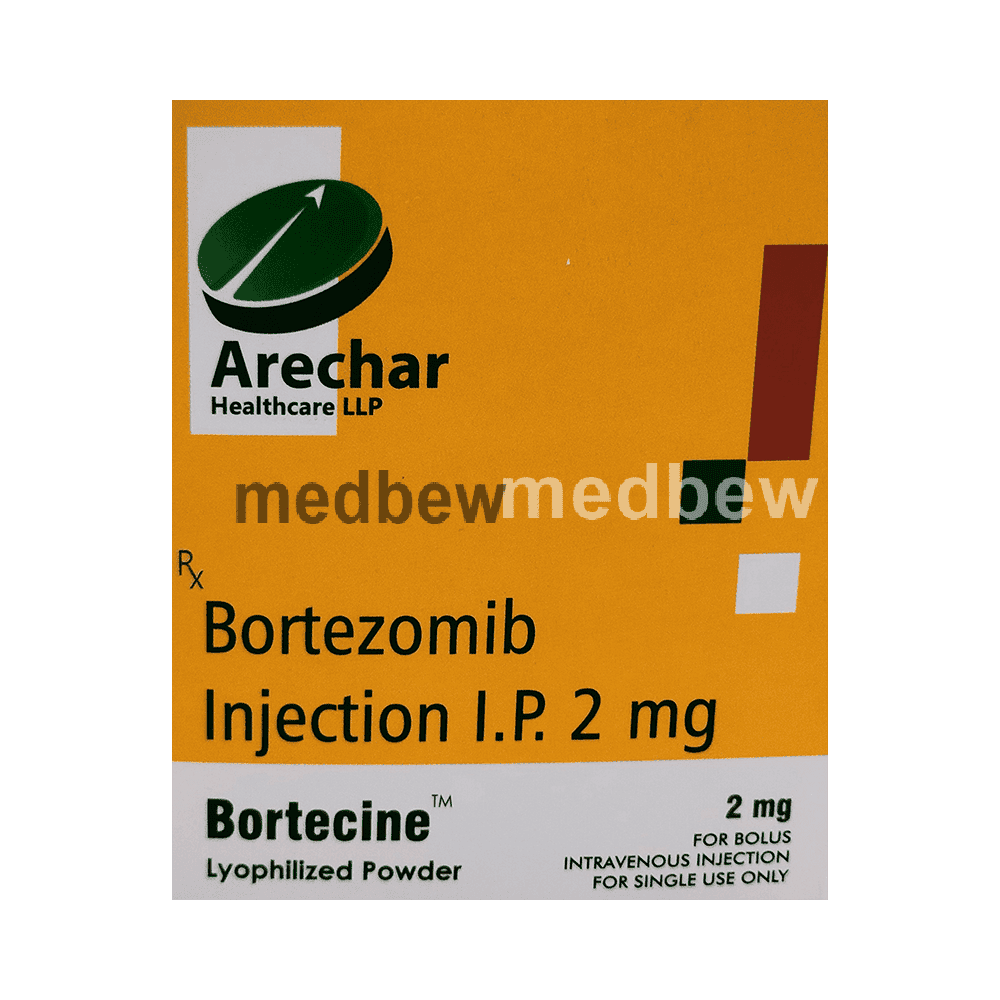 If you have multiple myeloma, your body is destroying bone faster than it is being replaced. This makes bones weak and painful and more likely to break. Bortecine Injection may be prescribed along with other cancer treatments such as chemotherapy. It is an important part of your treatment and increases the survival rate of people with multiple myeloma. This medicine will kill the cancerous cells and prevent their further growth as well as spread to other parts of the body. Follow your doctorโs instructions carefully to get the most benefit. Supplements of calcium and Vitamin D3 are also effective and may be prescribed if you do not have high blood calcium levels.