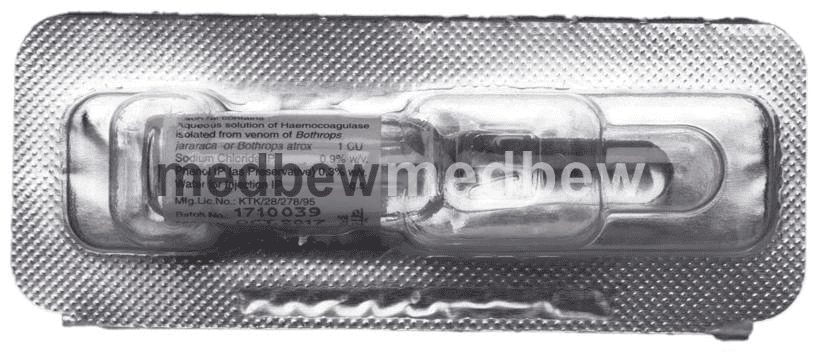 Botropase Injection is a snake venom-based mixture of certain enzymes which fasten the process of blood clotting and stop bleeding.