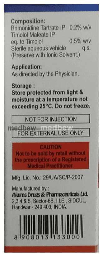Brimosoft-T Eye Drop is a prescription medicine used for the treatment of pressure in the eyes (ocular hypertension) and glaucoma. It works by decreasing the pressure of fluid in the eye (aqueous humor), which helps in lowering the increased eye pressure.