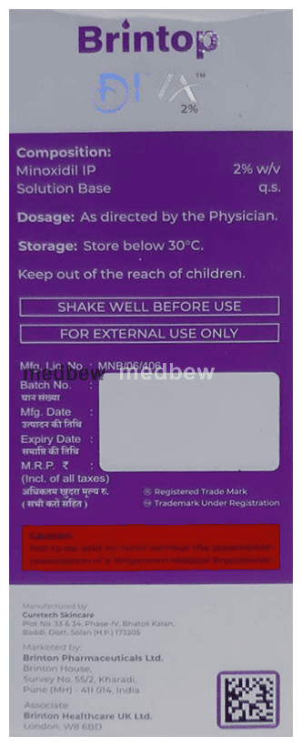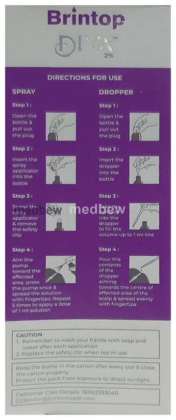 Brintop Diva 2% Topical Solution belongs to a class of drugs known as vasodilators. It is used to promote hair growth in men with male pattern baldness.