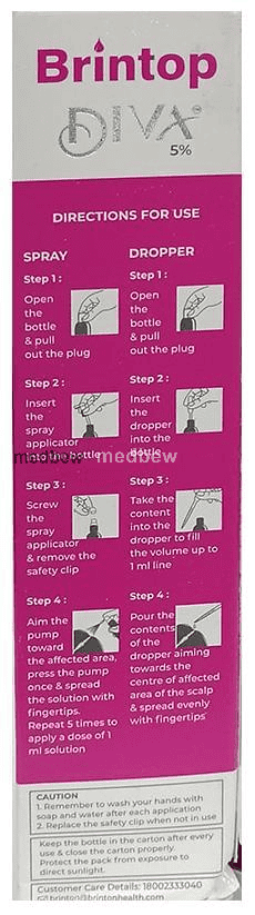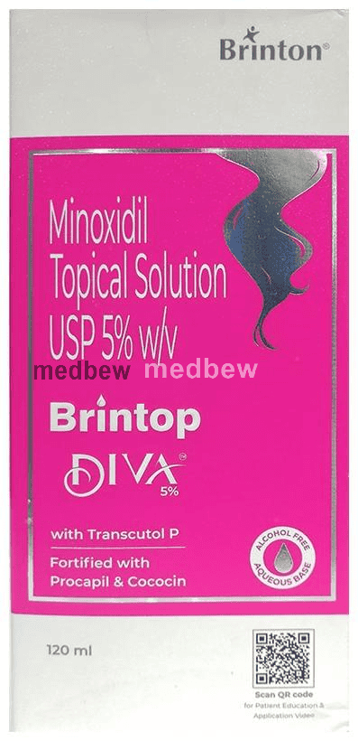 Brintop Diva 5% Topical Solution belongs to a class of drugs known as vasodilators. It is used to promote hair growth in men with male pattern baldness.