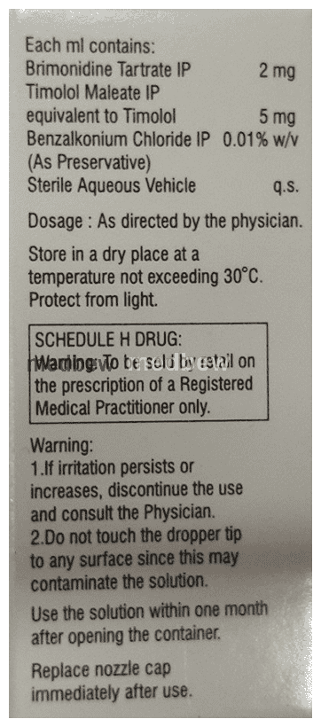 Briopt Eye Drop is a prescription medicine used for the treatment of pressure in the eyes (ocular hypertension) and glaucoma. It works by decreasing the pressure of fluid in the eye (aqueous humor), which helps in lowering the increased eye pressure.