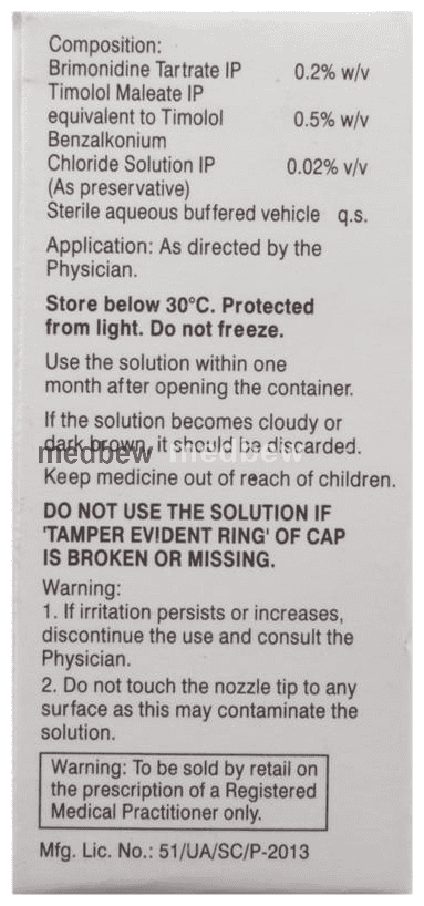 Britiblu Eye Drop is a prescription medicine used for the treatment of pressure in the eyes (ocular hypertension) and glaucoma. It works by decreasing the pressure of fluid in the eye (aqueous humor), which helps in lowering the increased eye pressure.