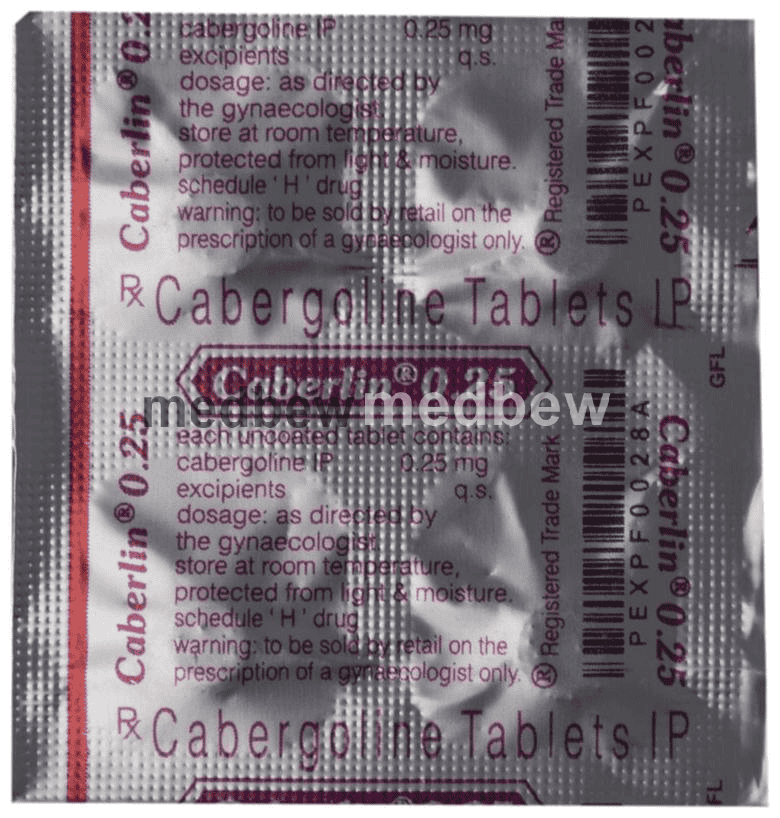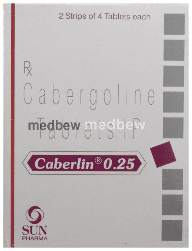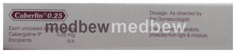 Caberlin 0.25 Tablet is a dopamine agonist. It is used for the treatment of a high level of prolactin. It is also helpful in stopping breast milk production in cases of stillbirth, abortion, or miscarriage.