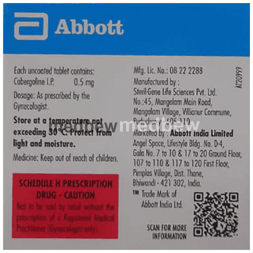 Composition Cabergoline (0.5mg)
