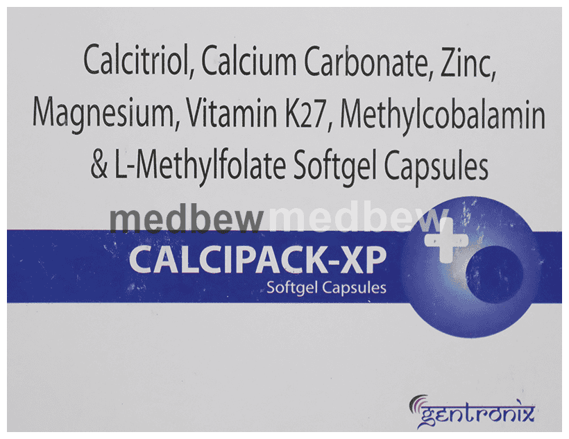Calcipack-XP Softgel Capsule is a nutritional supplement used in the treatment of calcium deficiency. It is prescribed when your diet alone cannot provide the necessary supplements your body needs. It increases the absorption of calcium and helps in bone growth as well as reduces the risk of bone disorders.