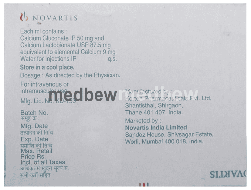 Calcium Sandoz Injection is prescription medicine having a combination of medicines that is used in the treatment of calcium deficiency. This medicine helps in improving the strengthening of the bones.