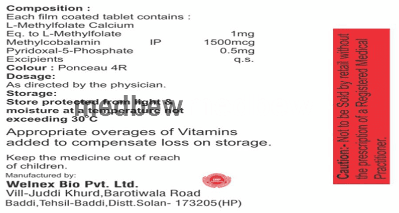 Composition L-Methyl Folate (1mg) + Methylcobalamin (1500mcg) + Pyridoxal-5-phosphate (0.5mg)