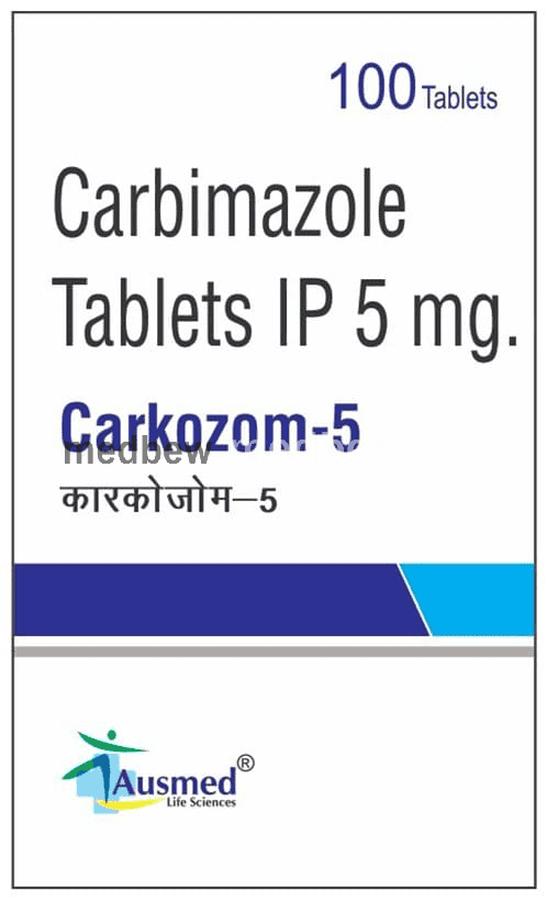 Carkozom 5 Tablet belongs to a group of medicine called anti-thyroid agents. It is used in the treatment of hyperthyroidism. It reduces the amount of thyroid hormones produced by the thyroid gland.