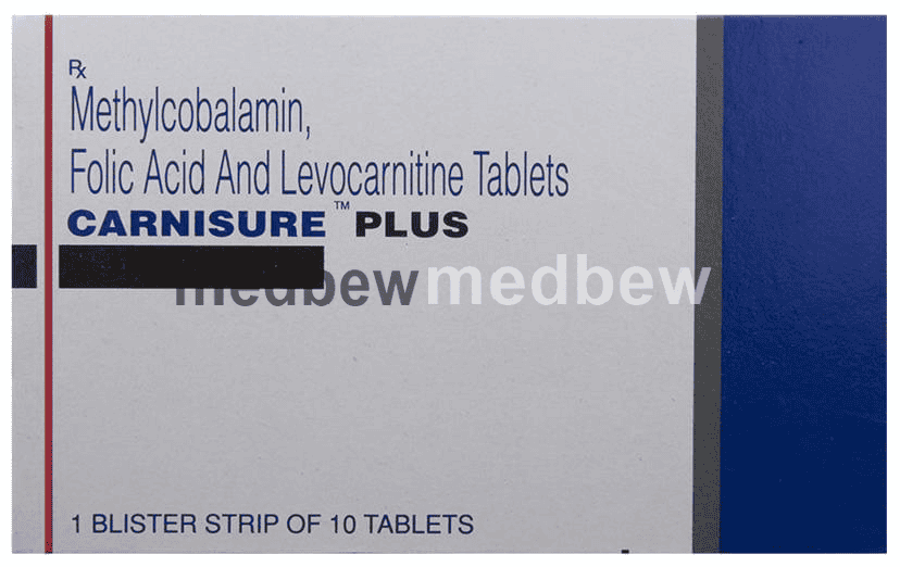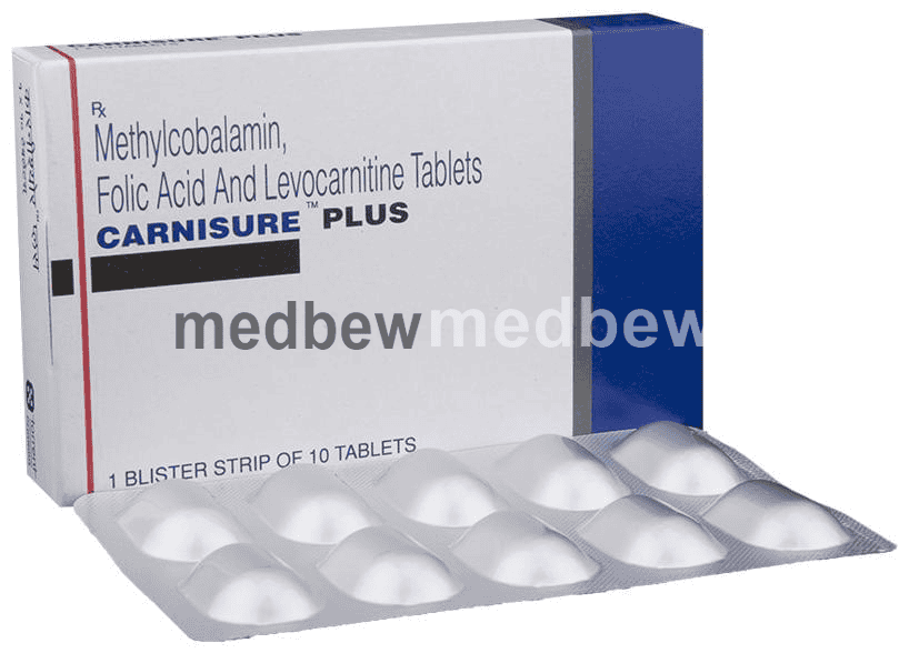 Carnisure Plus Tablet is a combination of three medicines: Levocarnitine, Methylcobalamin and Folic acid. This medicine helps in the regeneration of damaged nerves in the body. It works by providing the required nutrients for the growth of nerves in the body.