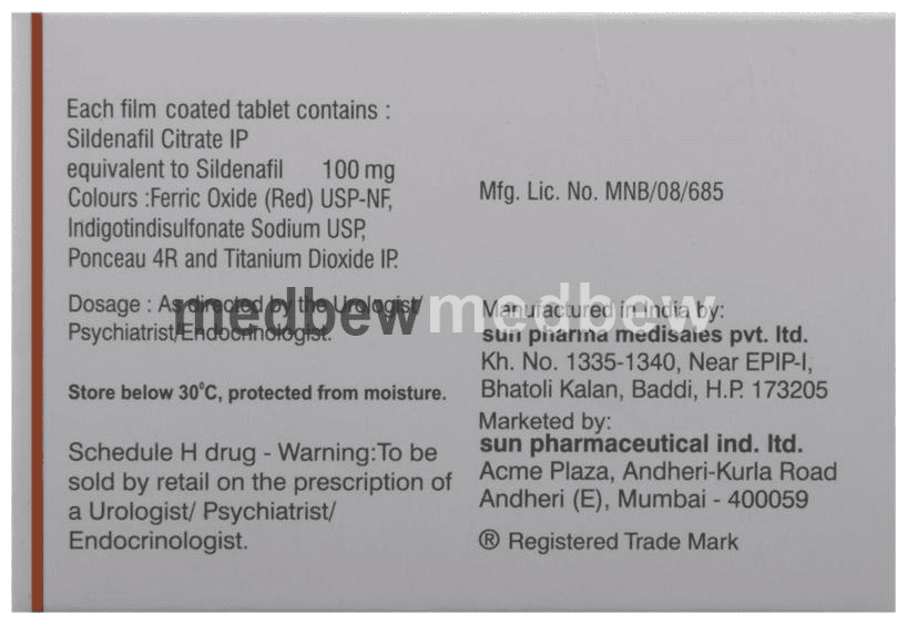 Composition Sildenafil (100mg)