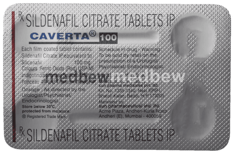 Caverta 100 Tablet is a prescription medicine used to treat erectile dysfunction (impotence) in men. It works by increasing blood flow to the penis. This helps men to get or maintain an erection. It belongs to a group of medicines known as phosphodiesterase type 5 (PDE 5) inhibitors.