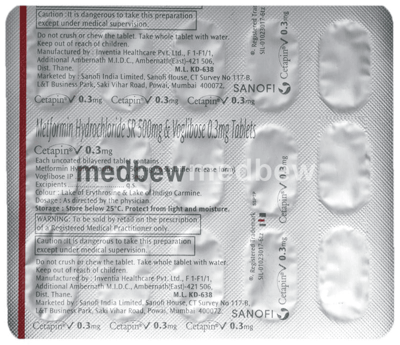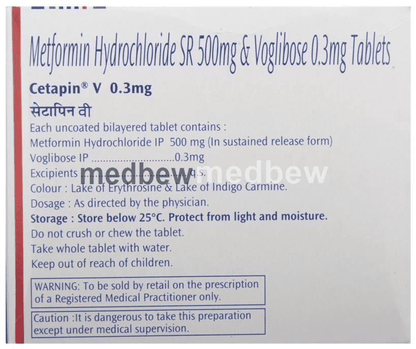 Cetapin V 0.3mg Tablet SR belongs to a category of medicines known as anti-diabetic drugs. It is a combination of medicines used to treat type 2 diabetes mellitus in adults. It helps control blood sugar levels in people with diabetes.