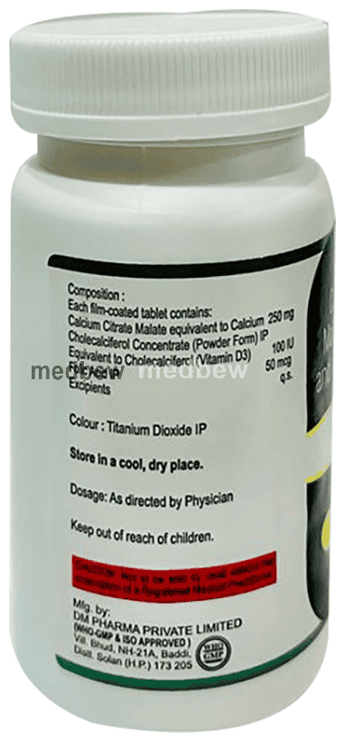 Composition Calcium Citrate Malate (250mg) + Vitamin D3 (100IU) + Folic Acid (50mcg)