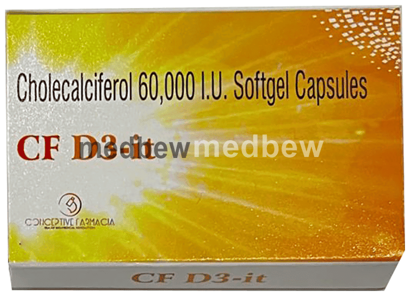 CF D3-IT Softgel Capsule is a form of vitamin D. It raises vitamin D levels in your blood. This in turn raises calcium levels in your blood by helping you absorb more calcium from food.
