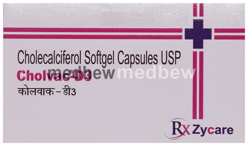 Cholvac-D3 Softgel Capsule is a form of vitamin D. It raises vitamin D levels in your blood. This in turn raises calcium levels in your blood by helping you absorb more calcium from food.