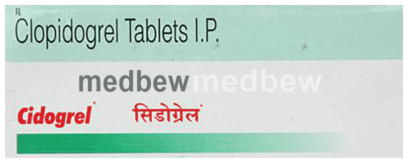 Cidogrel 75mg Tablet is an antiplatelet medicine, or blood thinner. It works by preventing cells called platelets from sticking together and helps to prevent your blood from clotting inside veins and arteries. This helps the blood flow freely around your body thereby preventing a heart attack or stroke (or deep vein thrombosis or pulmonary embolism). Take this medicine regularly and make appropriate lifestyle changes to achieve maximum benefits. It is often prescribed along with a low dose of aspirin which also helps to prevent blood from clotting.