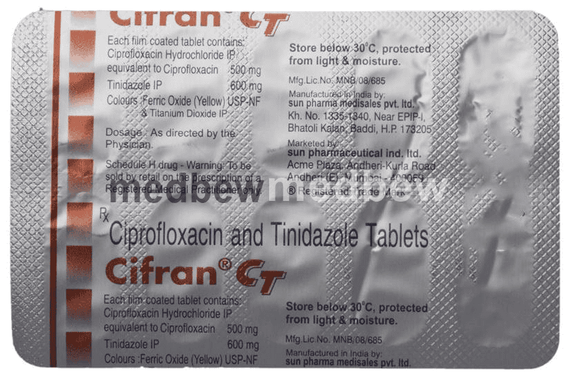 Cifran CT Tablet is a combination medicine that is used to treat gynecological infections, teeth and urine infections, lung infections, and abdominal infections such as acute diarrhea or dysentery. It acts against the infection-causing microorganisms to manage the infections.